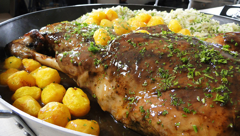Despejar por cima das costeletas salpicando um pouco de hortelã fresca picadinha.